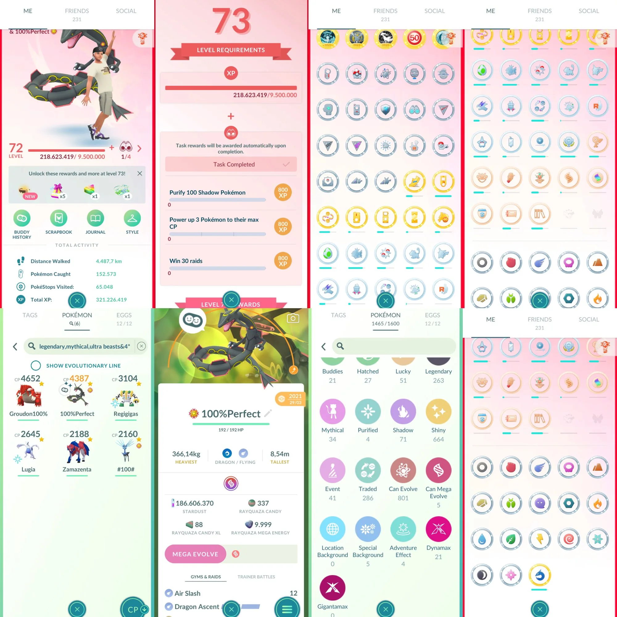 Level 72+;6 Legend iv100-SHUNDO Rayquaza Mega-207 legend-194 Hundo-664 shiny-41 Costume-51 lucky-21 Dynamax-186m+ Stardust-35 Medal