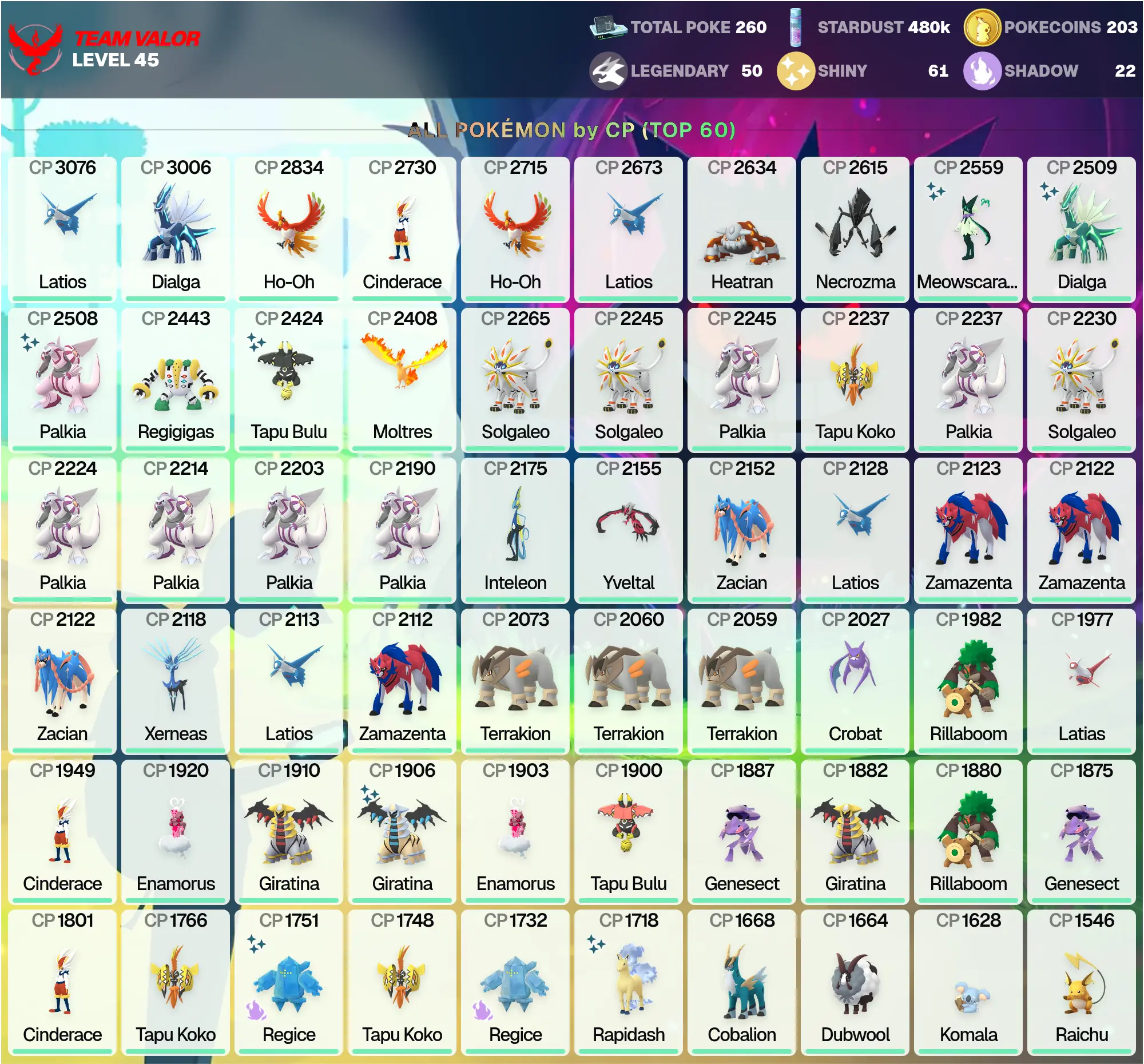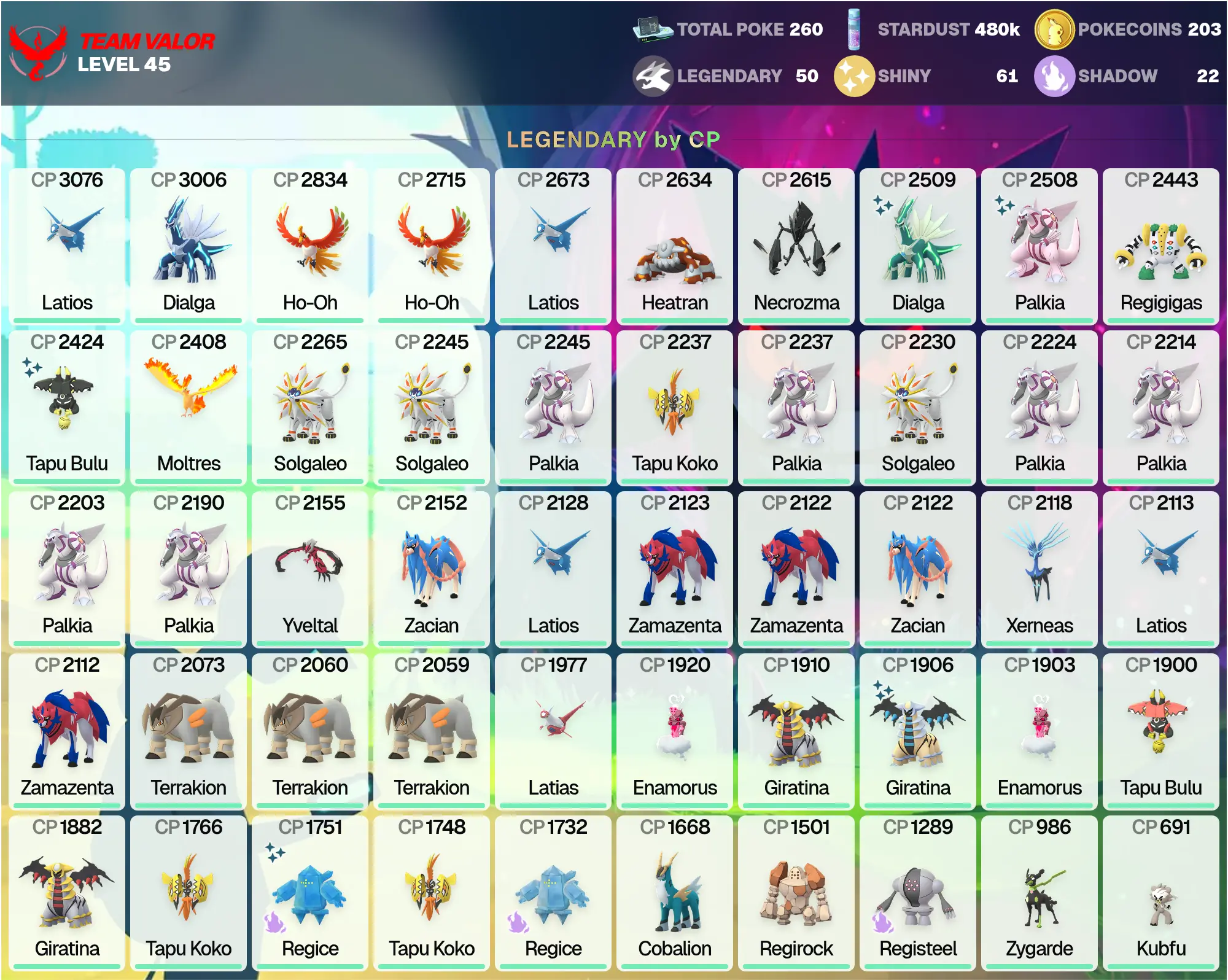 ![👑 POGO 🏆 MEGA Latios 4K 🐉 | Dialga 3K ⏳ | Legendary: 52 🌟 | Shiny Latias 🐉 | Groudon 🌋 | Zamazenta 🛡️ | Shiny: 50 ✨ | Necrozma 🌌 | Zacian ⚔️ | Palkia 3K 🌊 | [MG] | PG-TCCYF !MKG016357](https://cdn.gameboost.com/games/pokemon-go/teams/valor.webp)
