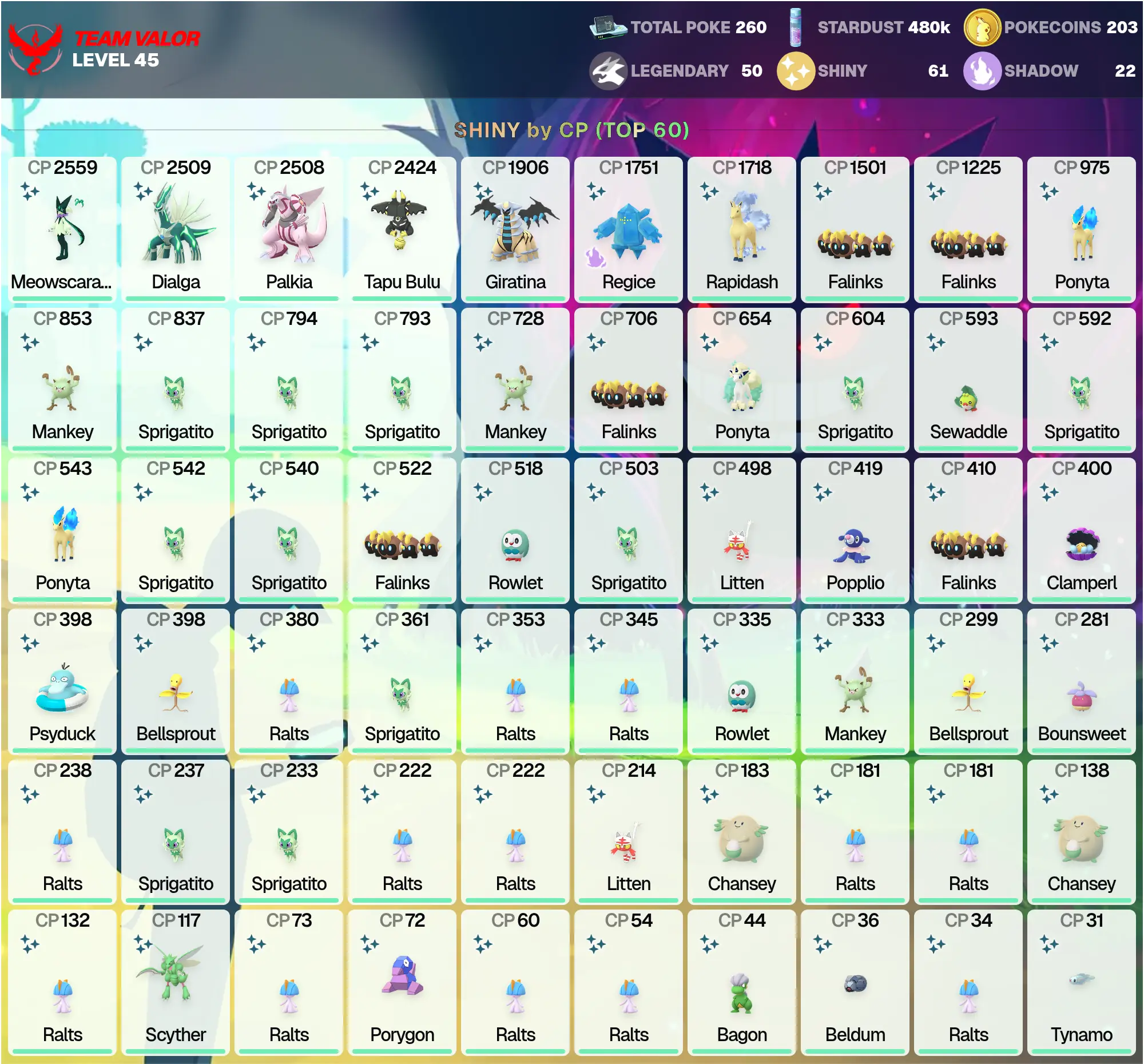 👑 POGO 🏆 Dialga 3K ⏳ | Ho-Oh 🌅 | MEGA Latios 4K 🐉 | Legendary: 50 🌟 | Shiny: 61 ✨ | Solgaleo 🌞 | Shiny: Dialga ⏳, Palkia 🌊, Tapu Bulu 🌺, Giratina 👻, Regice ❄️ | PG-MWYFT | [MG] !MKG016340