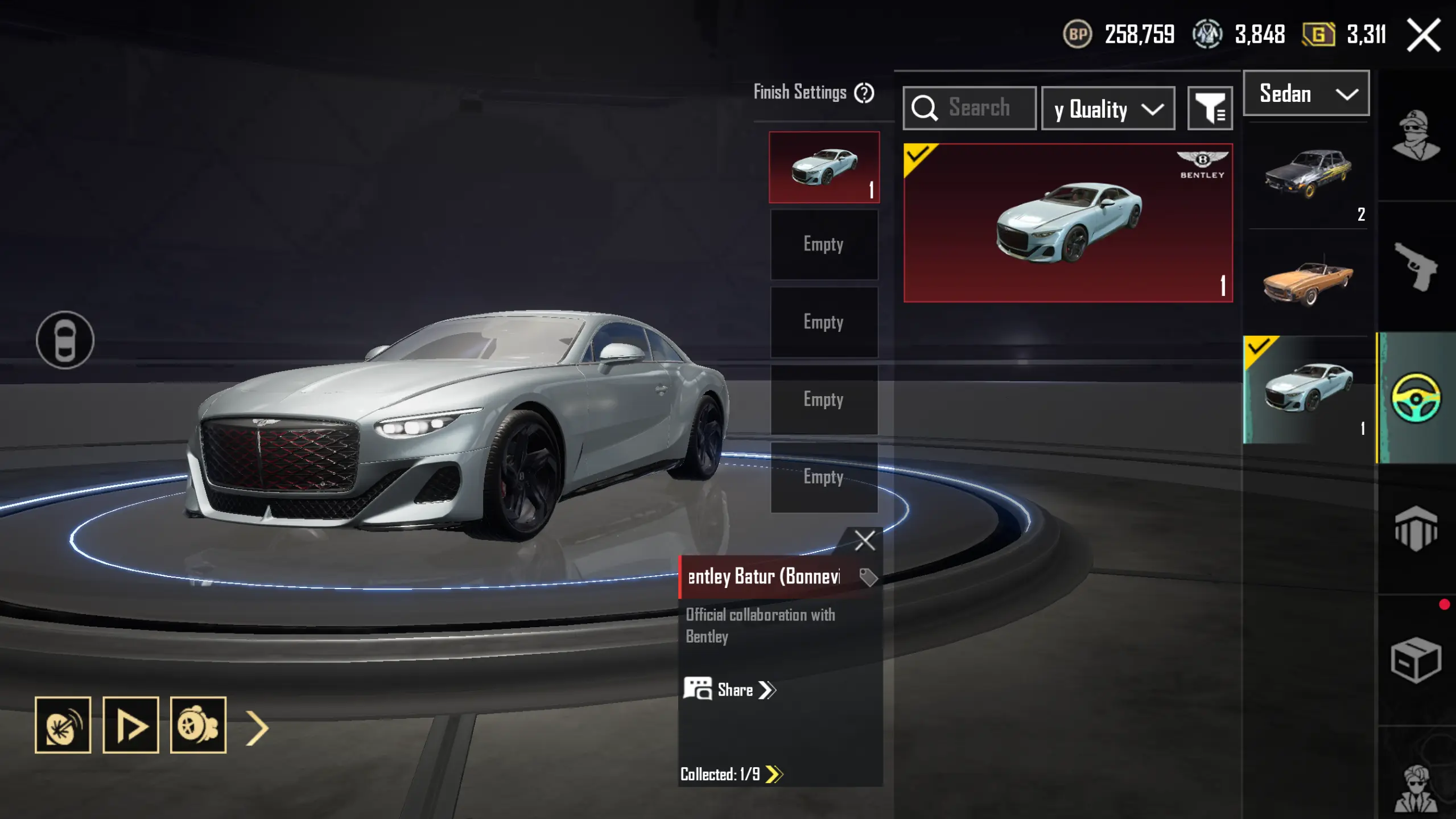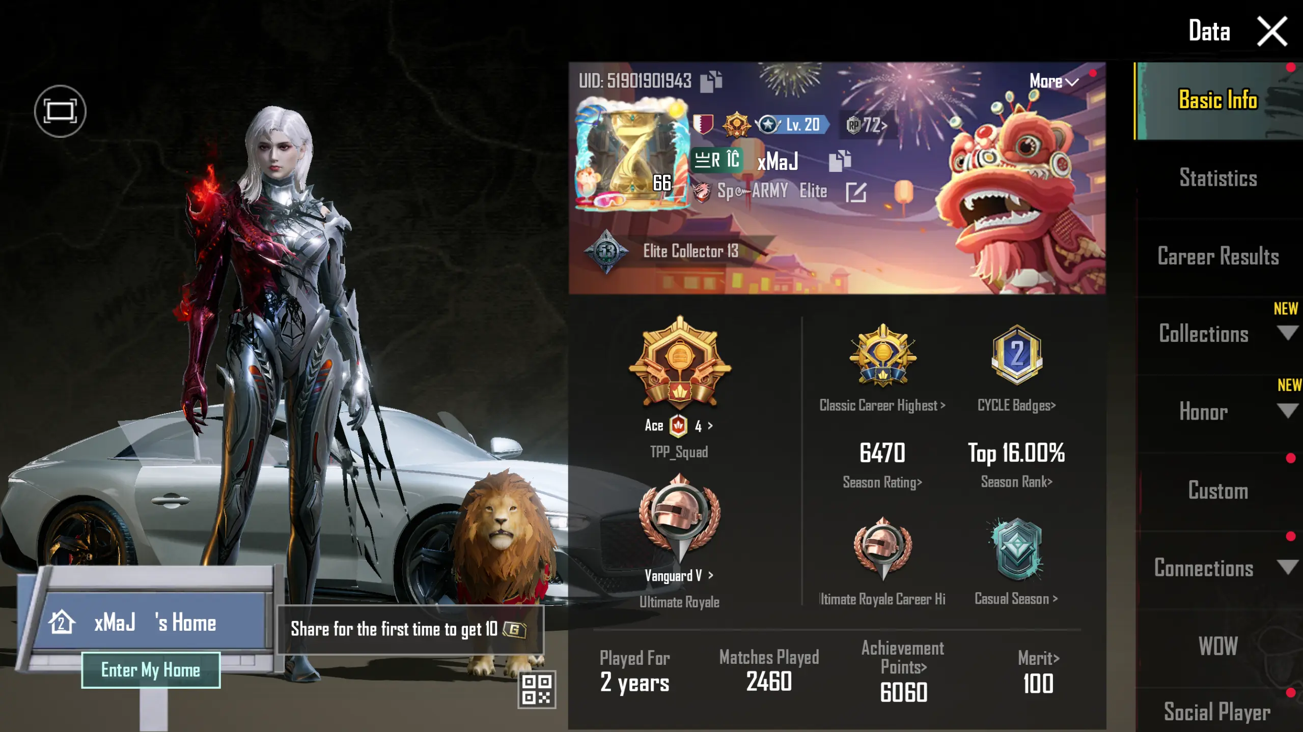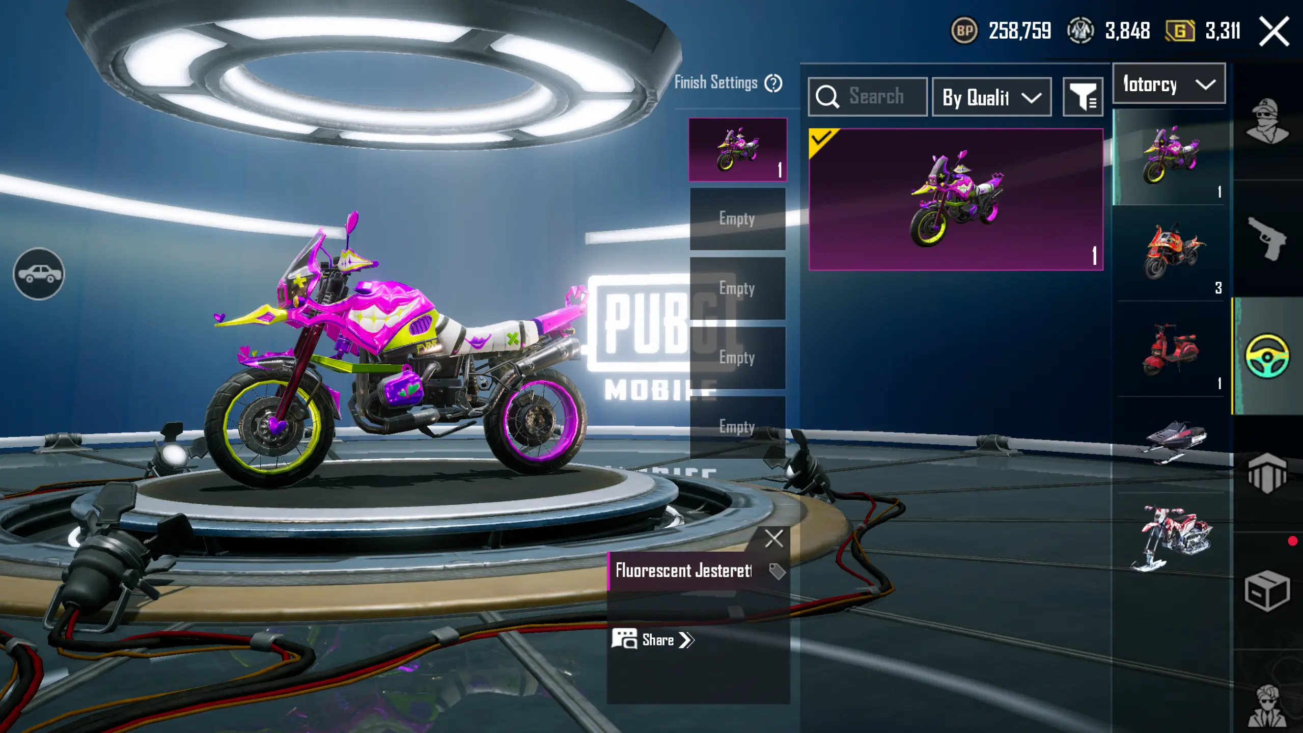 3X Suits 👔 Bently Batur Super Car 🚗 3 Ultimates ✨ M416 Fool Max 🎯 M762 Luminous Max 🎯 Loot Crates 💥 32x GunLab 💀 11 Kill Messages 💣 Gernade Molee 🔥 Rare Emotes 🎭 Mythics 💎 Helmets 🪖 Backpacks 🎒 Parachutes 🪂 Gliders 👑 Secure 🔐
