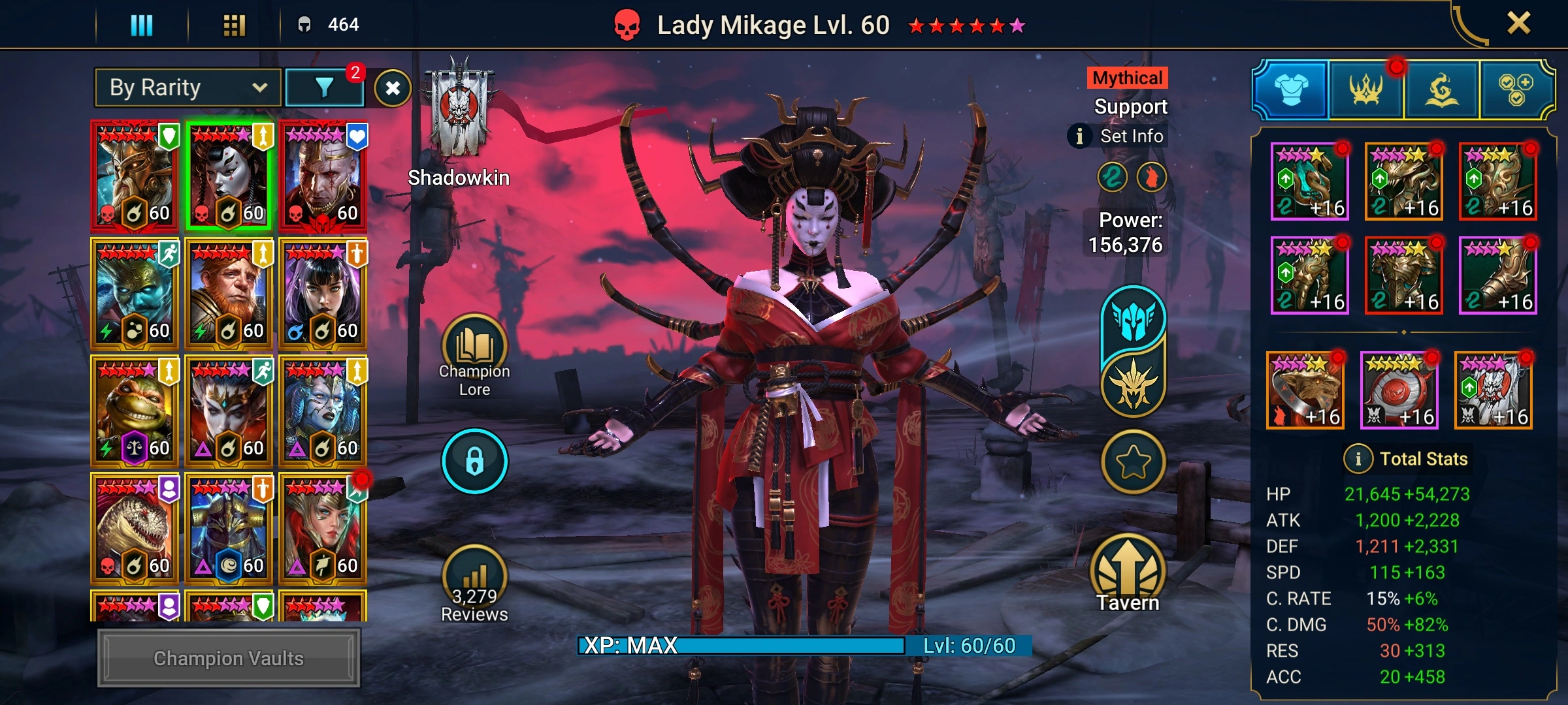 [3 Mythical Champions][5.62M] Lady Mikage(5*),Alaz(6*),Embrys + 66 LEGENDARY (Lamasu,Arb,Fabian(6*),Gnut(6*),Donnie,Trunda x2,Tholin,Kimi,Gnishak,Pythion,Brogni,BEK x2...) + 2k UNM + 28411 energy