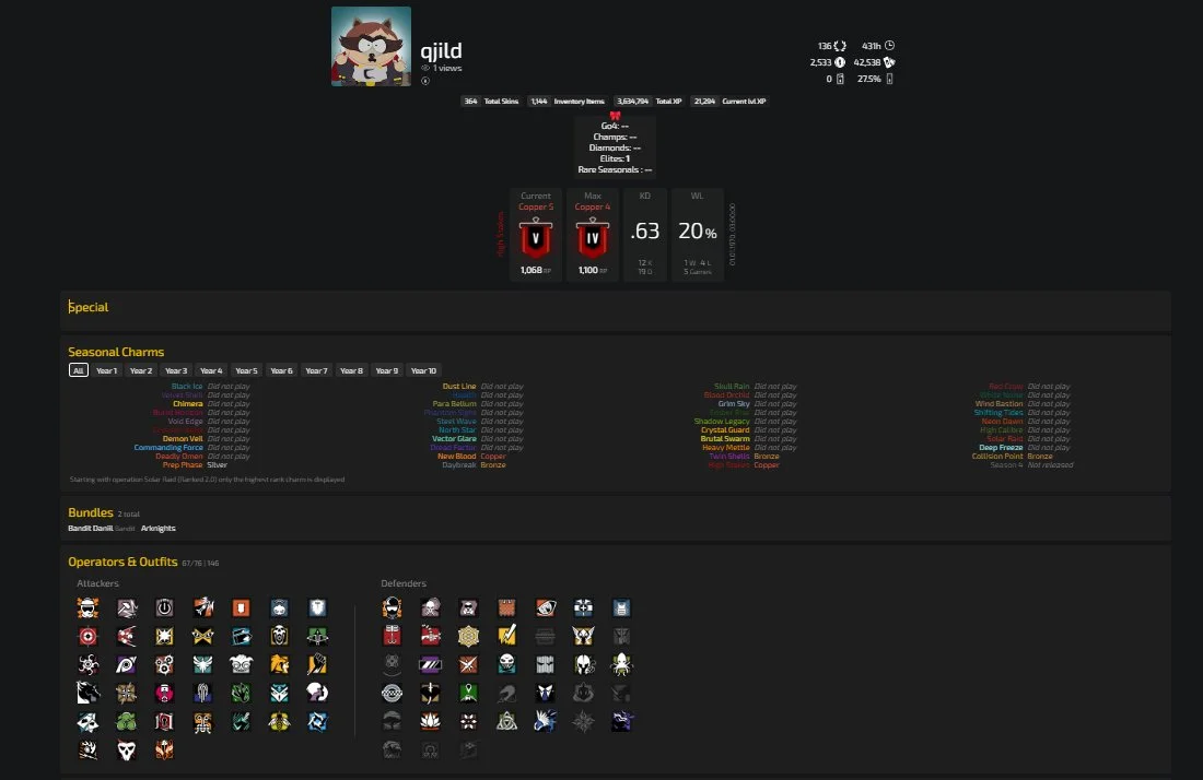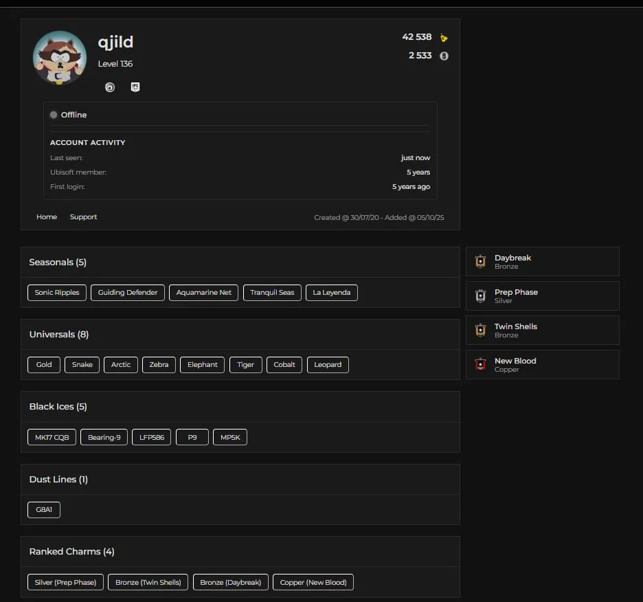 136lvl 115 Skins 64 Operators Black Ices 5 8 Universal Seasonals 5