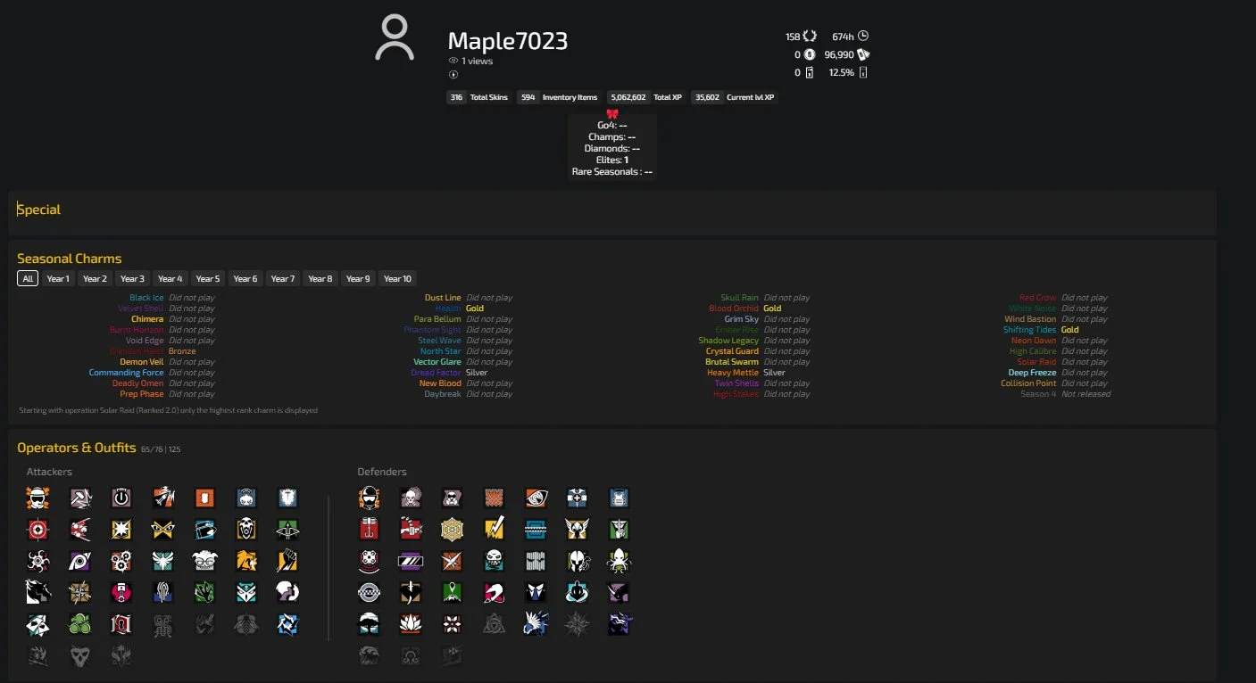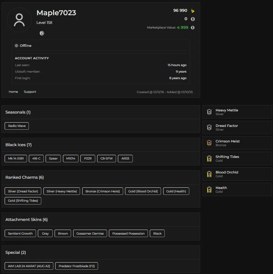 158lvl 110 Skins 63 Operators Black Ices 75 Universal 2 Special