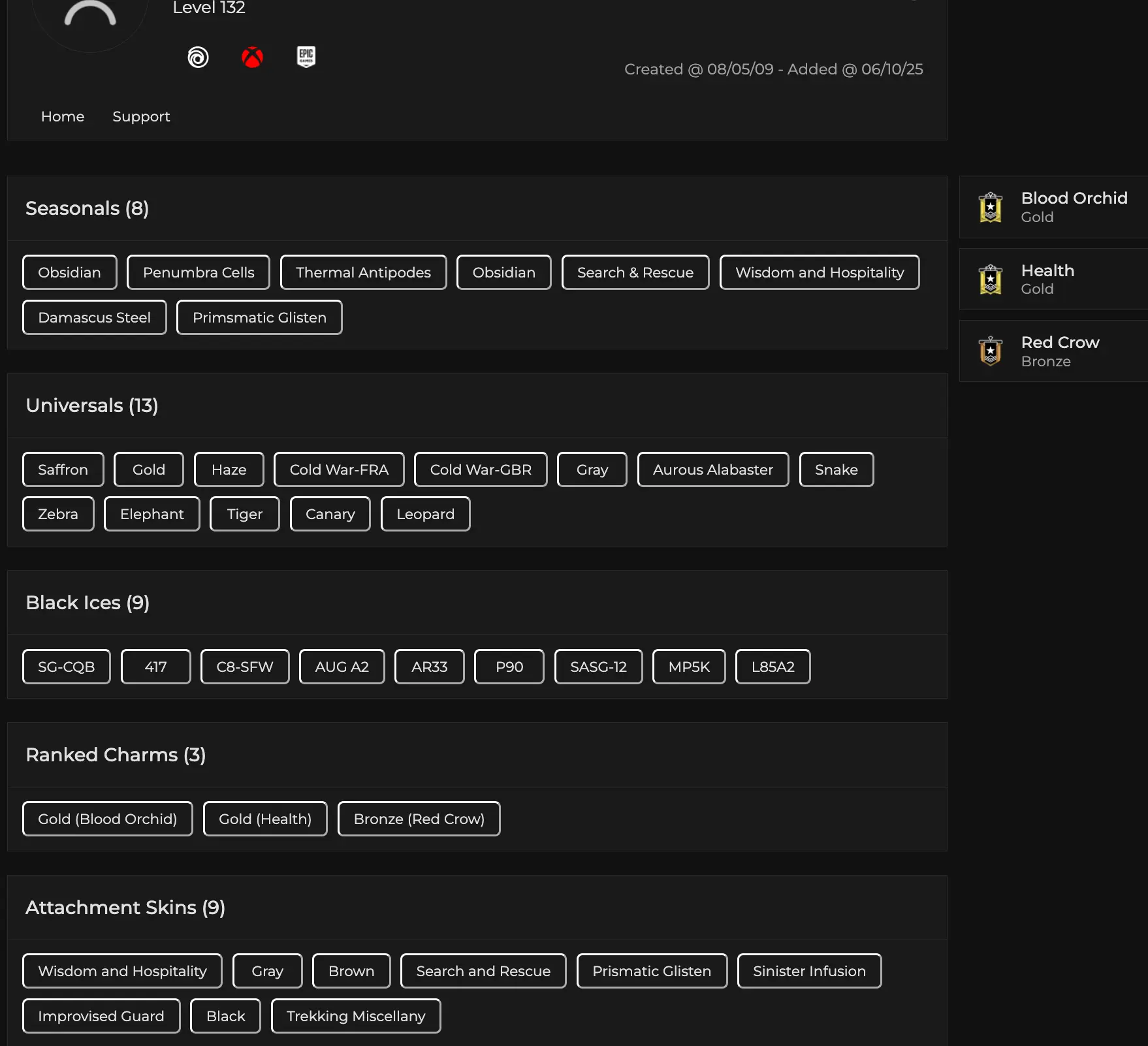 🏦 [PC/PSN] Ranked Ready | Level 132 | OBSIDIAN | 9x Black ice | Aurous Alabaster | 13x Universal | 8x Seasonal | Health Gold | 7x Elites | 9x Legendary Skins | 62 Operators | 6525 Renown