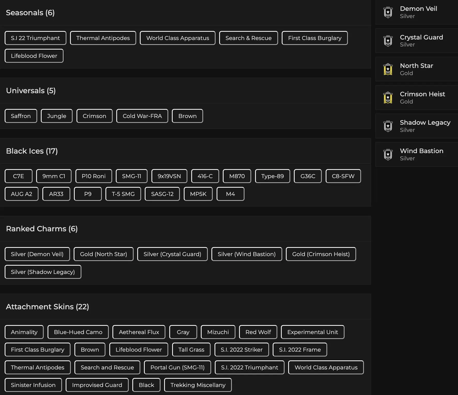 📸 [PC/XBOX] Ranked Ready | Level 189 | 17x Black Ice | 6x Seasonal | 5x Universal | 2x Gold Charm | 9x Elites | 20x Legendary Skins | Pilot Programs | 64 Operators | 88,429 Renown