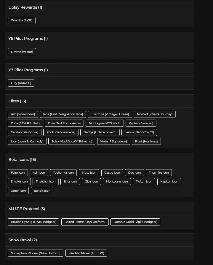 [UPLAY] 248 LVL ⸱ 40X GLACIER ⸱ 3X GRADE ⸱ 4X GOLD DUSTS ⸱ 32X BLACK ICES ⸱ 20X UNIVERSALS ⸱ 29X SEASONALS ⸱ 16X ELITES ⸱ 16 BETA ICONS ⸱ 67 OPERATORS ⸱ 54K RENOWN ⸱ FA