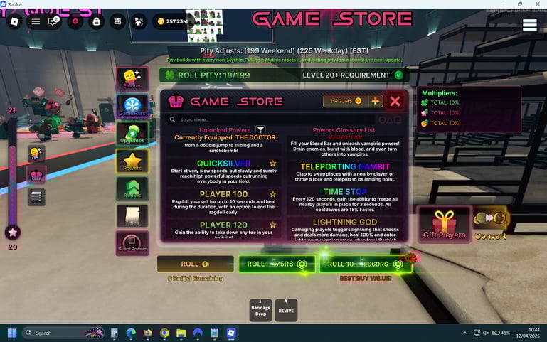 [Instant] [Volleyball Legends] Style: Mikage, Hinto, Hakochi, Hakochi (coinflip pity passed) | Abilities: Super Sprint, Rolling Thunder, 1x Lucky Spins| Level 24