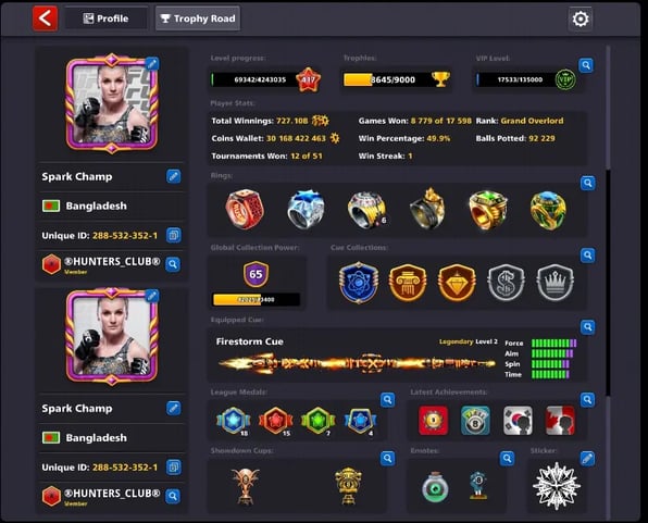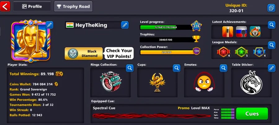 🎱 RAREST | 100 CCP MAX | ALL CUES MAX | 700M COINS 💰 | BLACK DIAMOND TIER 💎 | RAREST RINGS 💍 | RAREST COLLECTION | FAST ⚡ | SECURE 🔐 🎱