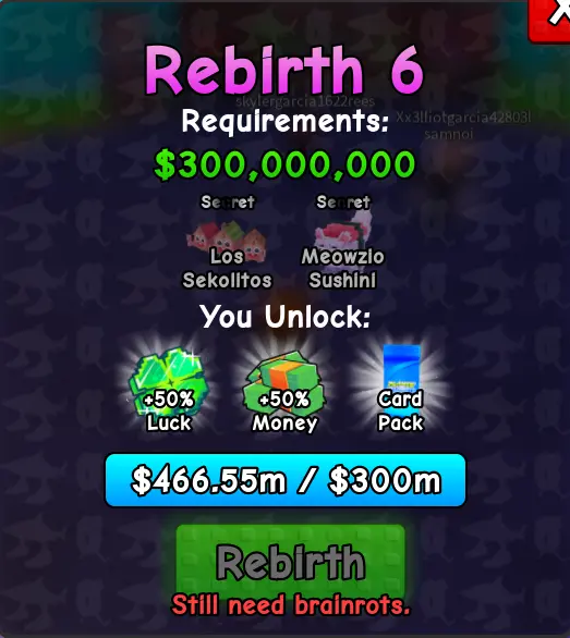 ⭐ REBIRTH 6 ⭐ ( Los Sekolitos & Meowzio Sushini ) Plants vs Brainrots