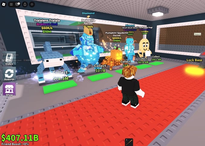 晚期游戏账户具有更高的重生等级,解锁永久特质和更强的倍增效果。这些“Steal a Brainrot”账户通常包括更快的生成速度、更多的Brainrot插槽,以及可以获得游戏早期不会出现的稀有或突变Brainrot。防御系统更为先进,使基地更难被袭击且更易于防守。
