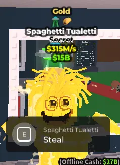 Gold Spaghetti Tualatti 375M/s - Steal a Brainrot - Fast Delivery