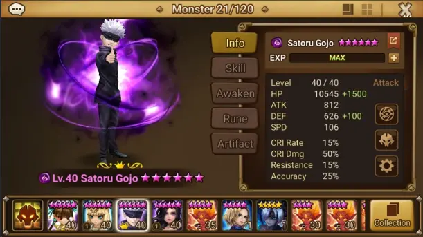 Asia ⸱ 100 LVL + 6*-213 + LD 3 ⸱ Isis + Satoru Gojo + Yennefer + 54 Nat5 + Teshar + Charlotte + Verad