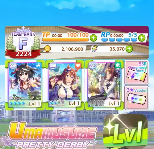 Uma Musume账户分为三大进度层级。初级账户为你提供一套SSR角色和辅助卡牌,但剧情进展不多,非常适合想要特定角色但仍想自己体验内容的玩家。中级账户已通关多个剧情章节,解锁高级训练设施,并包含多名已全面培养、适合竞赛活动的Uma Musume角色。终局账户则配备了完整阵容,拥有最大继承属性、丰富的辅助卡牌库和大量储备资源,可立即进行高水平游戏。