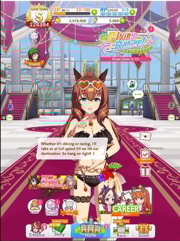 合作和季节限定角色为赛马娘阵容增添了另一层深度。过去活动中限定的赛马娘角色如果没有重新登场,因无法通过当前的转蛋获取而具有稀有价值。一些账号特别突出这些稀有角色,作为其主要卖点。