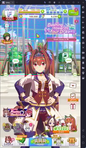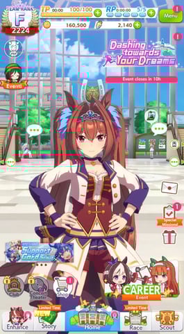 游戏玩法集中于引导这些角色通过训练阶段,在此过程中你需要做出影响他们属性、技能和赛跑表现的决策。每次训练都会提供选择,平衡身体发展、心理调节以及与其他角色的关系建设。目标是为你的赛马娘准备从地方比赛到重大锦标赛的各种赛事。