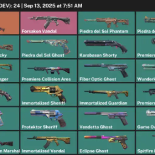 AP | 24 Skins | exp PLATINUM 3 | Forsaken Vandal | Immortalized Vandal | Piedra del Sol Phantom | Spitfire Frenzy | Piedra del Sol Ghost | S4G