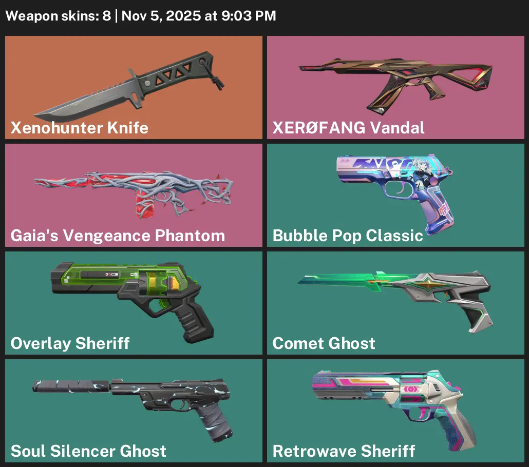BR | 8 Skins | exp SILVER 3 | Xenohunter Knife | Gaia's Vengeance Phantom | XERØFANG Vandal | Bubble Pop Classic | Overlay Sheriff | S4G