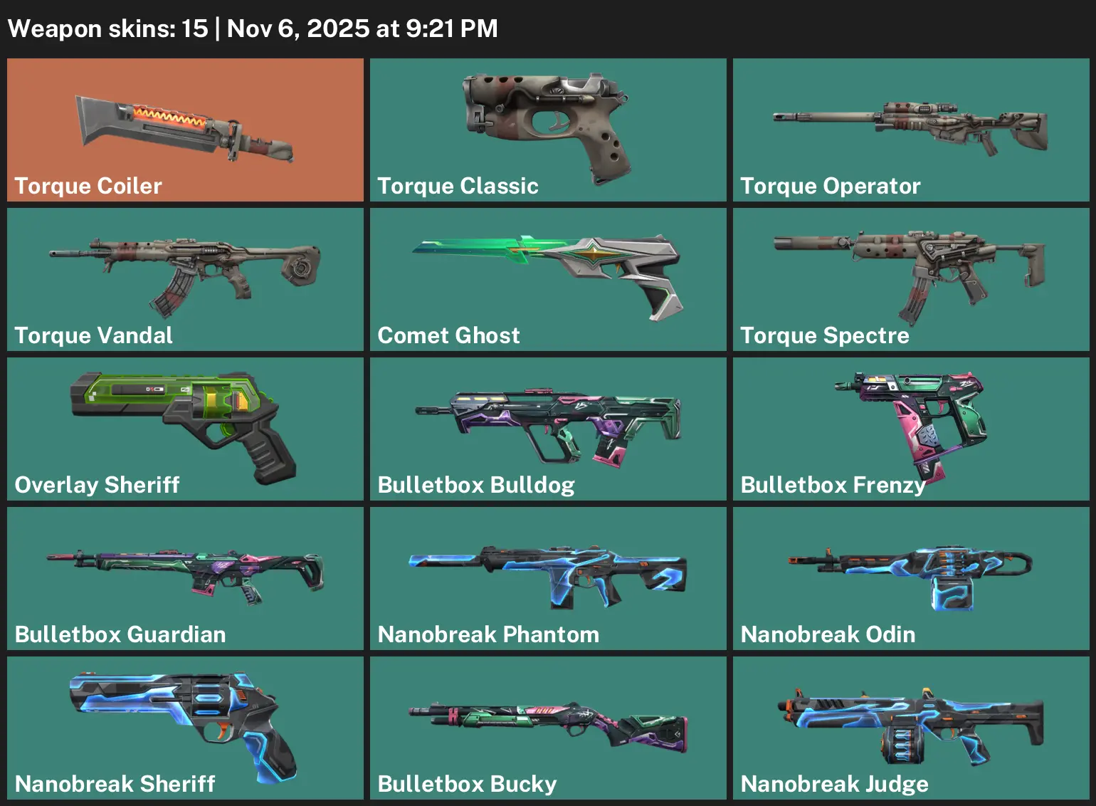 EU | 15 Skins | exp BRONZE 2 | Torque Coiler | Torque Classic | Torque Operator | Torque Vandal | Comet Ghost | Torque Spectre | Overlay Sheriff | S4G