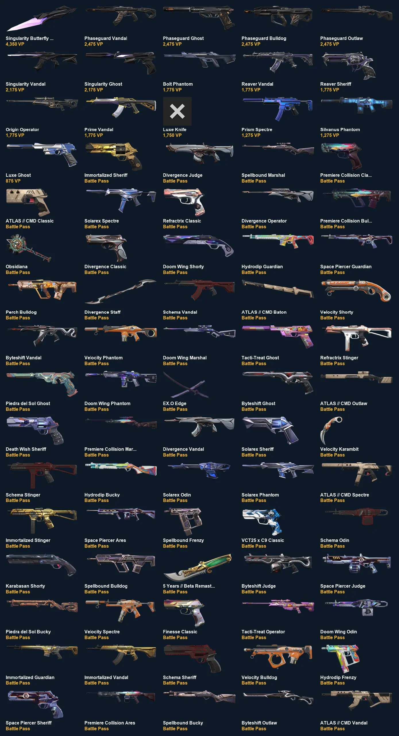 [EU] EX.O Edge + Phaseguard Vandal + Ghost + Buldog + Outlak+Singularity Butterfly + Vandal + Ghost + Origin OP + Prime Vandal