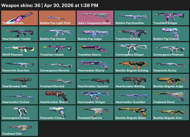 🌍EU | 36 Skins🎭 + 2 Knives🗡 | Kuronami Vandal🌊 | Ion Phantom⚡ | Hieroscape Set🔥 | Torque Set💎 | ~6.5K VP💸