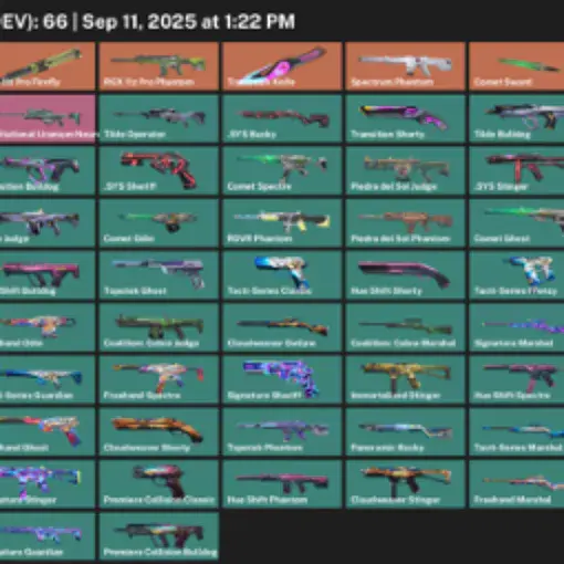 LA | 66 Skins | exp SILVER 2 | RGX 11z Pro Firefly | Glitchpop Vandal | Kuronami Vandal | Spectrum Phantom | RGX 11z Pro Phantom | S4G