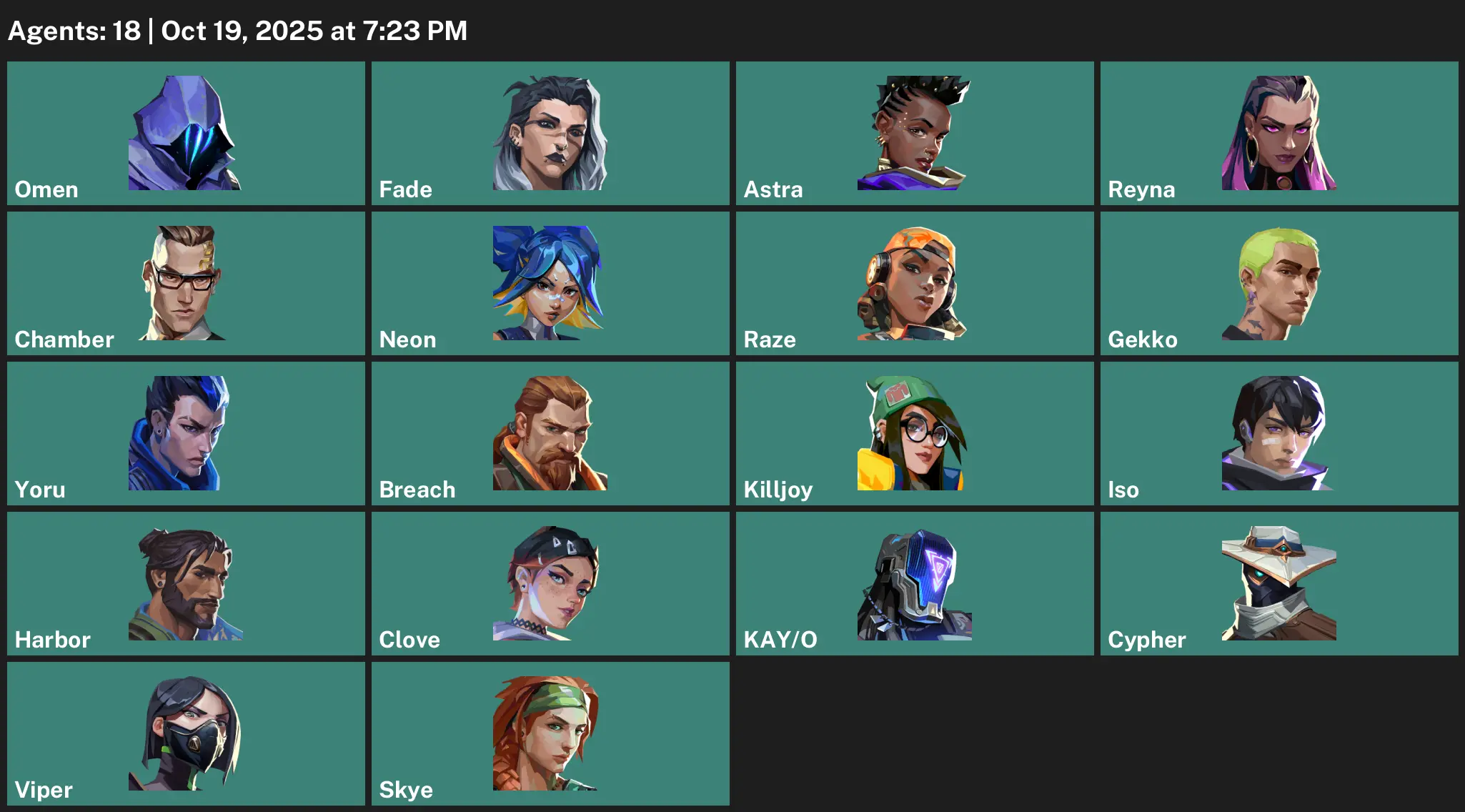 👍 NA 🐍 Unranked 🎲 35 Skins 🛻 75 VP 🍋 18 Agents 🧸 Value: 10575 VP 👐 Songsteel 🐶 Genesis Arc 🐬 Spectrum Classic 🥽 Glitchpop Axe 👞 Reaver Operator 🦊 Ego Vandal