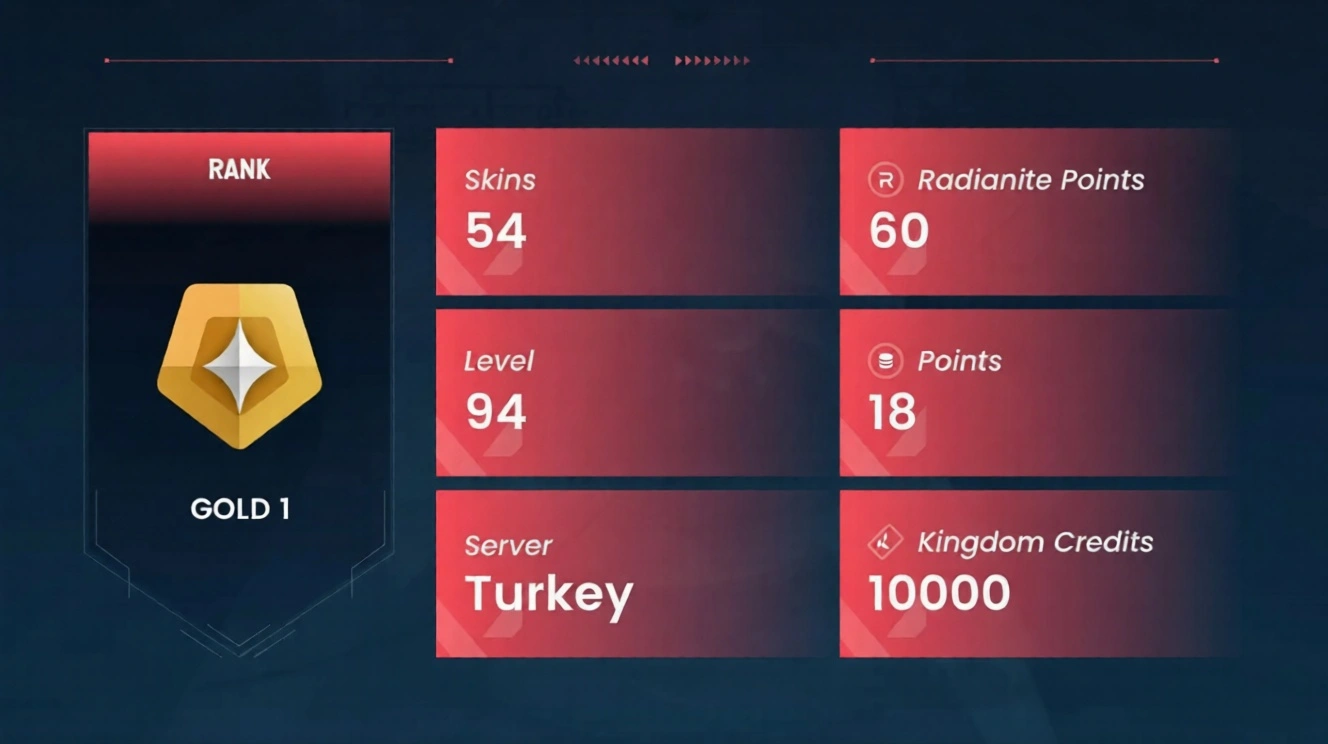 Valorant EU/TR Account | Diamond 1 Rank | 54 Skins | Includes Champions 2024, VCT x PRX Classic & Evori Dreamwings Vandal | Email Changeable.